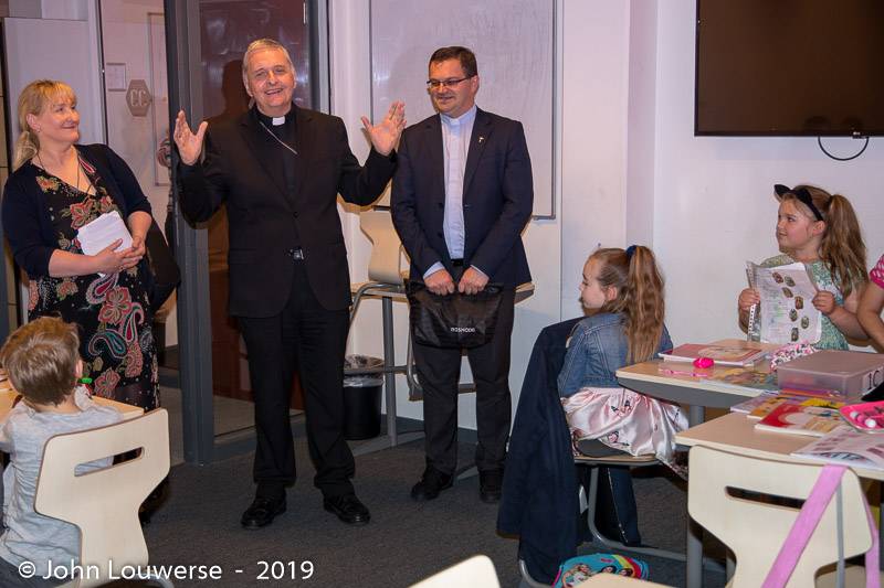 De bisschop sprak met veel mensen in de gemeente, bezocht op zaterdag de Poolse school en droeg op zaterdag en zondag de Heilige Mis in de kerk op.