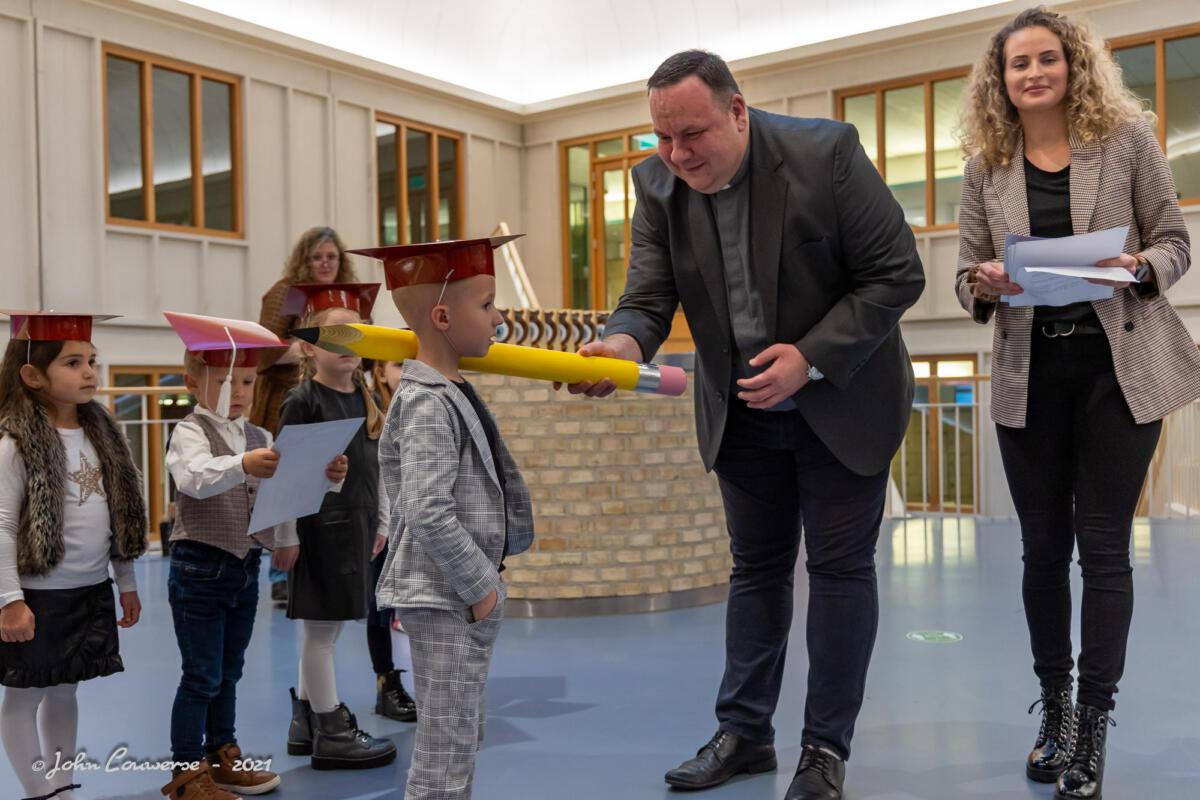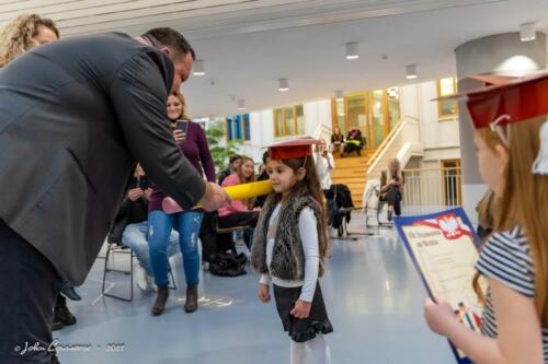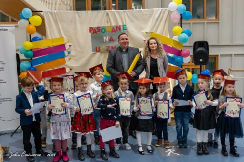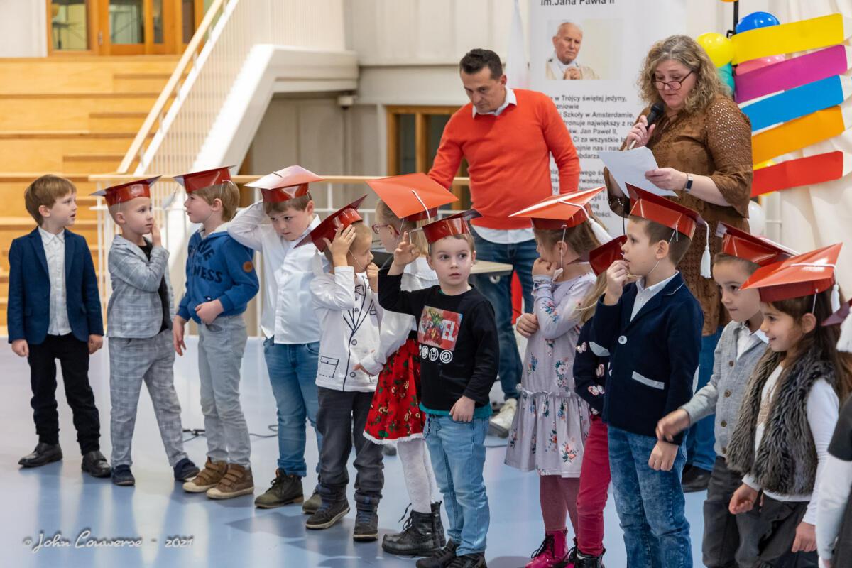 Op de Poolse school in Amsterdam zijn op 20 november de kinderen van de eerste klas in een mooie ceremonie, door priester Krzysztof, tot student benoemd. De kinderen kregen allemaal een studenten baret en voor het slaan wordt nu geen zwaard gebruikt maar een extra groot potlood.