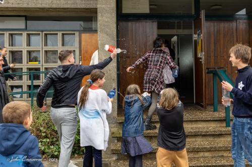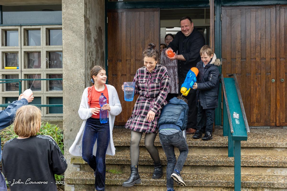 Vandaag kwam de Poolse gemeenschap weer massaal samen voor de viering van Pasen en een gemeenschappelijke Paas lunch. Het mooie weer op maandag speelde Śmigus-Dyngus in de kaart en veel kinderen probeerde elkaar en een paar volwassenen nat te gooien terwijl de volwassenen binnen de lunch nuttigen.